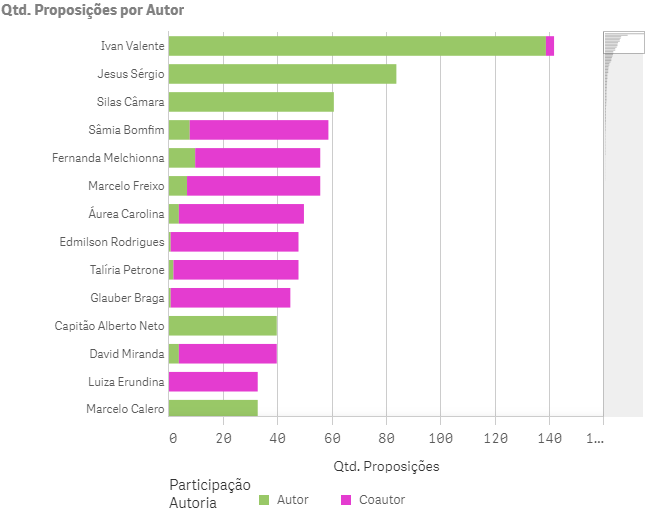 Outro destaque é que dos 15 deputados que mais apresentaram, estão os 10 do Psol.